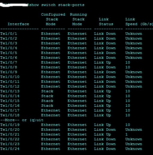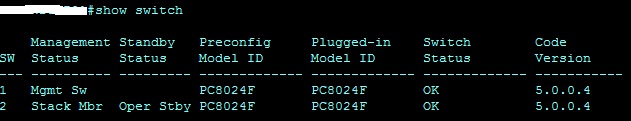 | console(config)# | stack | Unlike other models, 8024 uses front ports for stacking.Front ports default to ethernet mode. This must be changed to stacking mode through these commands, on each switch individually. After applying the stack-port int stack command, the configured mode will change, but the running mode of the port shall persist, until the stack is reloaded. After reload, the switches will come up as one stack. |